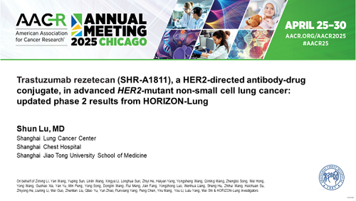 2025 AACR口头报告|AG亚游创新药瑞康曲妥珠单抗治疗晚期HER2突变非小细胞肺癌研究结果披露
