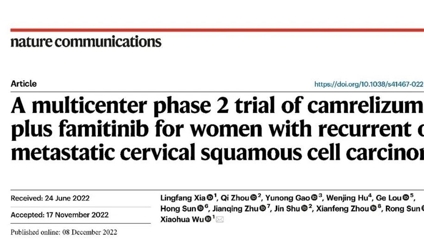 AG亚游创新药卡瑞利珠单抗联合法米替尼用于复发或转移性宫颈癌研究结果荣登JCO